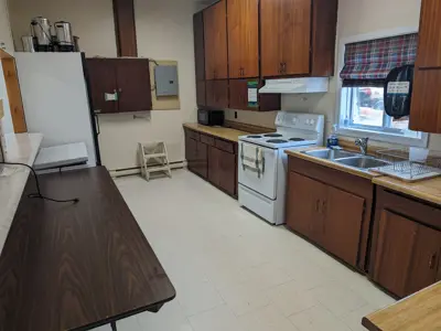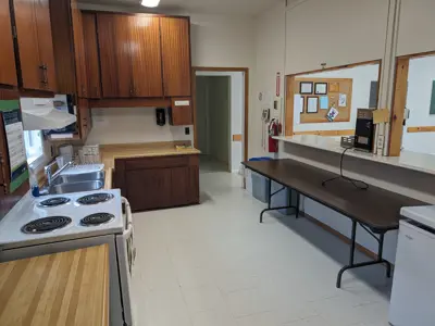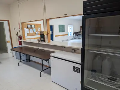 - Fully stocked and licensed commercial kitchen. Kitchen amenities include stove, commercial fridge, coffee maker, microwave.