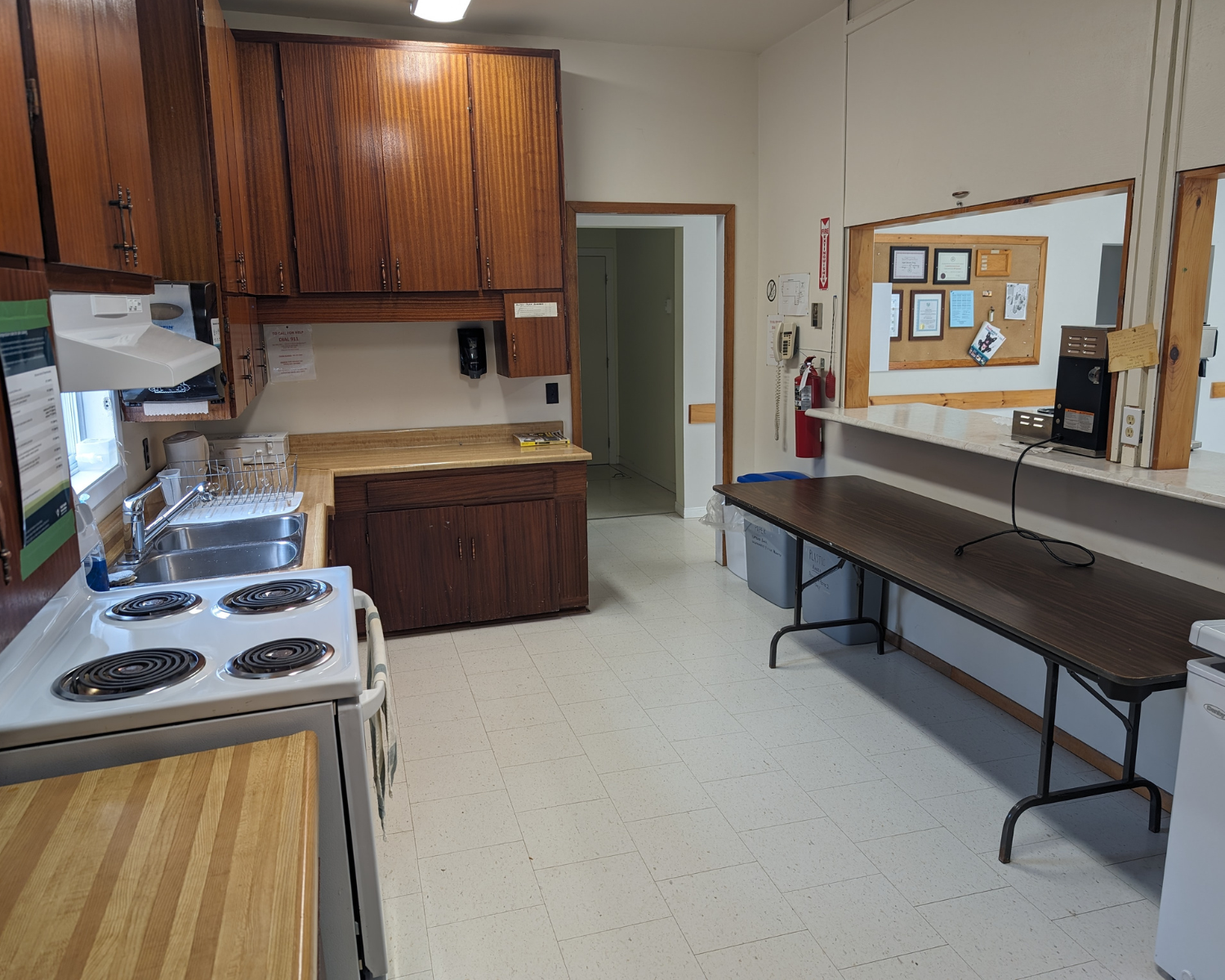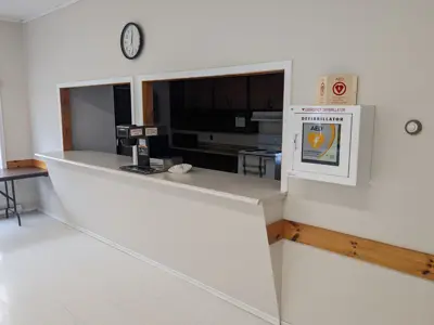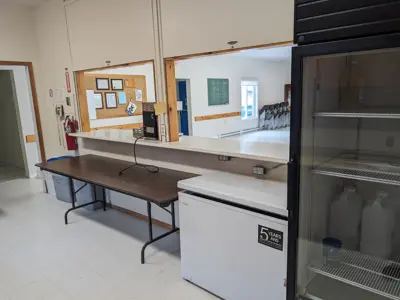 - Fully stocked and licensed commercial kitchen. Kitchen amenities include stove, commercial fridge, coffee maker, microwave.